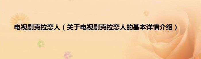 本文关于电视剧克拉恋人的基本详情介绍就讲解完毕,希望对大家有所帮助。