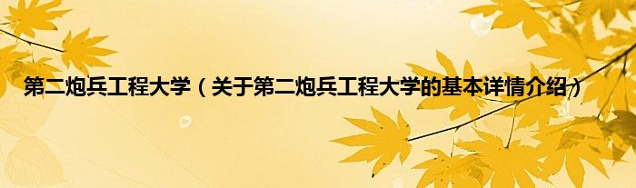 本文关于第二炮兵工程大学的基本详情介绍就讲解完毕,希望对大家有所帮助。
