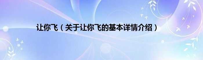 本文关于让你飞的基本详情介绍就讲解完毕,希望对大家有所帮助。