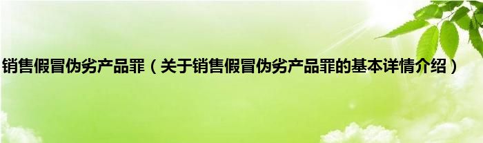 本文关于销售假冒伪劣产品罪的基本详情介绍就讲解完毕,希望对大家有所帮助。