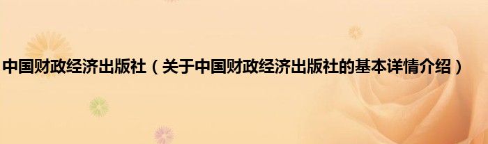 本文关于中国财政经济出版社的基本详情介绍就讲解完毕,希望对大家有所帮助。