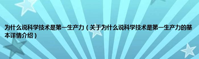 为什么说科学技术是第一生产力(关于为什么说科学技术是第一生产力的基本详情介绍)