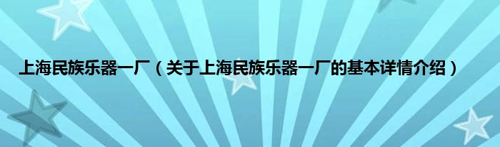 上海民族乐器一厂(关于上海民族乐器一厂的基本详情介绍)
