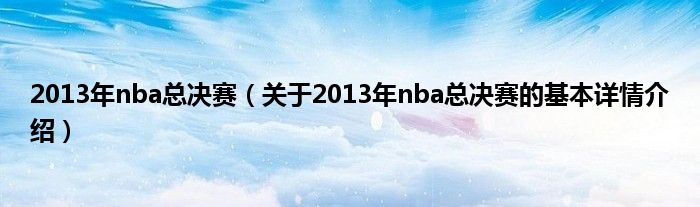 2013年nba总决赛(关于2013年nba总决赛的基本详情介绍)