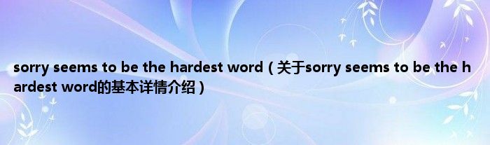 本文关于sorry seems to be the hardest word的基本详情介绍就讲解完毕,希望对大家有所帮助。