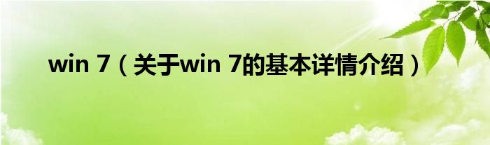 本文关于win 7的基本详情介绍就讲解完毕,希望对大家有所帮助。
