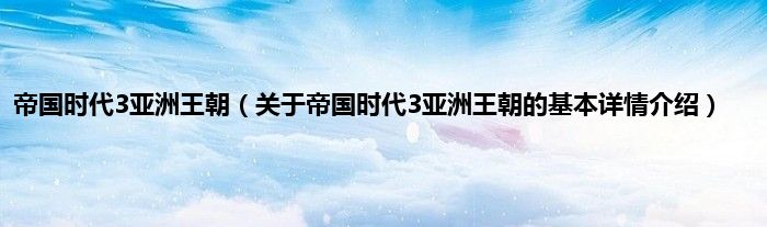 本文关于帝国时代3亚洲王朝的基本详情介绍就讲解完毕,希望对大家有所帮助。