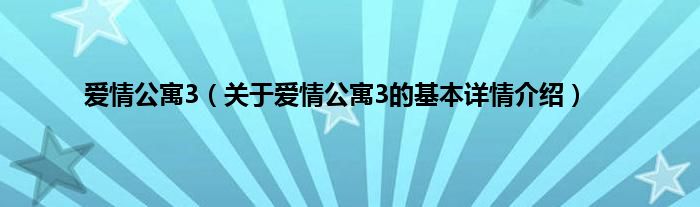 本文关于爱情公寓3的基本详情介绍就讲解完毕,希望对大家有所帮助。