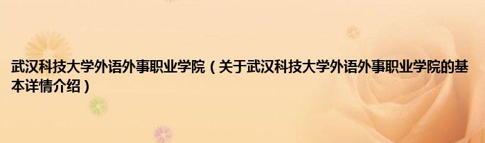 本文关于武汉科技大学外语外事职业学院的基本详情介绍就讲解完毕,希望对大家有所帮助。