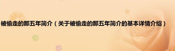 被偷走的那五年简介(关于被偷走的那五年简介的基本详情介绍)