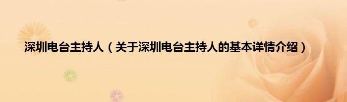 本文关于深圳电台主持人的基本详情介绍就讲解完毕,希望对大家有所帮助。