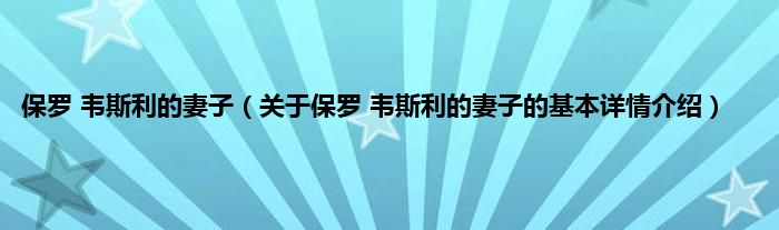 本文关于保罗 韦斯利的妻子的基本详情介绍就讲解完毕,希望对大家有所帮助。