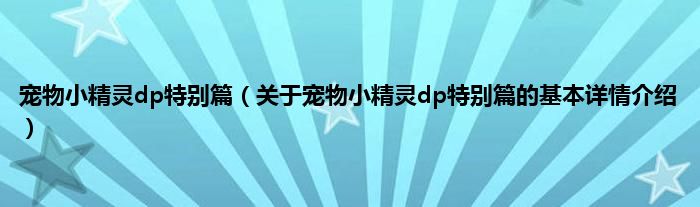 宠物小精灵dp特别篇(关于宠物小精灵dp特别篇的基本详情介绍)