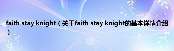 faith stay knight(关于faith stay knight的基本详情介绍)