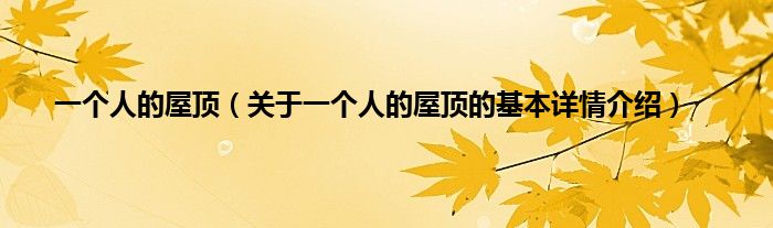 一个人的屋顶(关于一个人的屋顶的基本详情介绍)