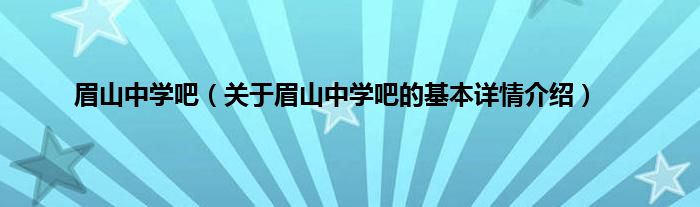 本文关于眉山中学吧的基本详情介绍就讲解完毕,希望对大家有所帮助。