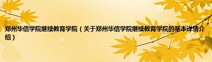 郑州华信学院继续教育学院(关于郑州华信学院继续教育学院的基本详情介绍)