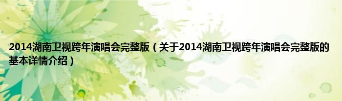 本文关于2014湖南卫视跨年演唱会完整版的基本详情介绍就讲解完毕,希望对大家有所帮助。