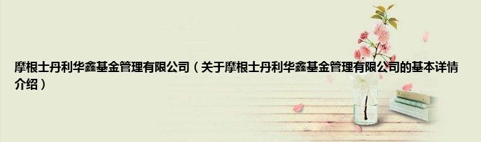 本文关于摩根士丹利华鑫基金管理有限公司的基本详情介绍就讲解完毕,希望对大家有所帮助。