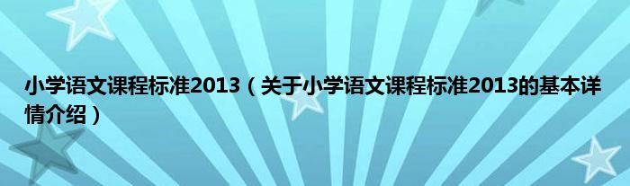 本文关于小学语文课程标准2013的基本详情介绍就讲解完毕,希望对大家有所帮助。