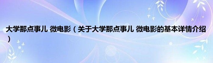 本文关于大学那点事儿 微电影的基本详情介绍就讲解完毕,希望对大家有所帮助。