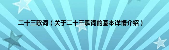 本文关于二十三歌词的基本详情介绍就讲解完毕,希望对大家有所帮助。