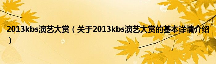 本文关于2013kbs演艺大赏的基本详情介绍就讲解完毕,希望对大家有所帮助。