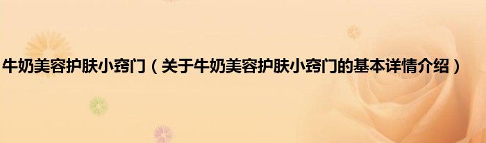 本文关于牛奶美容护肤小窍门的基本详情介绍就讲解完毕,希望对大家有所帮助。