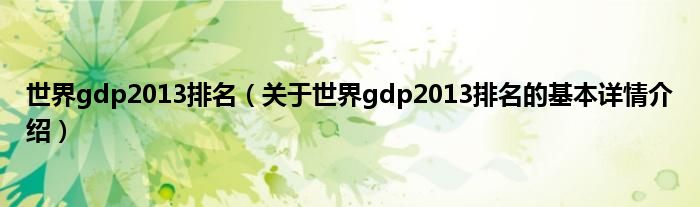 本文关于世界gdp2013排名的基本详情介绍就讲解完毕,希望对大家有所帮助。