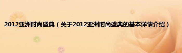 2012亚洲时尚盛典(关于2012亚洲时尚盛典的基本详情介绍)