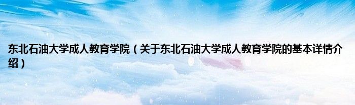 东北石油大学成人教育学院(关于东北石油大学成人教育学院的基本详情介绍)