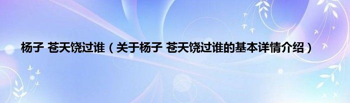 本文关于杨子 苍天饶过谁的基本详情介绍就讲解完毕,希望对大家有所帮助。