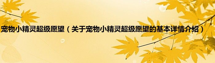 本文关于宠物小精灵超级愿望的基本详情介绍就讲解完毕,希望对大家有所帮助。