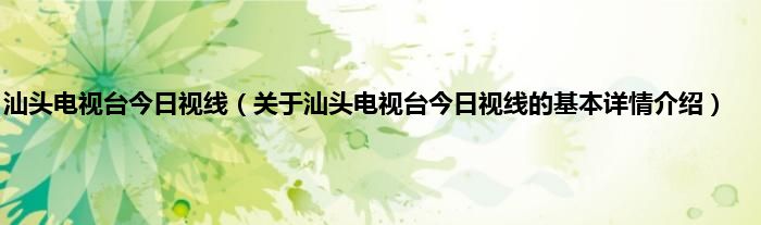 本文关于汕头电视台今日视线的基本详情介绍就讲解完毕,希望对大家有所帮助。