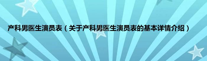 本文关于产科男医生演员表的基本详情介绍就讲解完毕,希望对大家有所帮助。