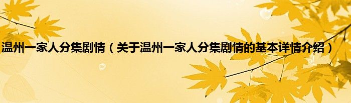 本文关于温州一家人分集剧情的基本详情介绍就讲解完毕,希望对大家有所帮助。