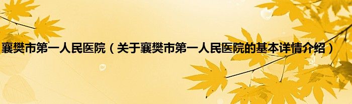 本文关于襄樊市第一人民医院的基本详情介绍就讲解完毕,希望对大家有所帮助。