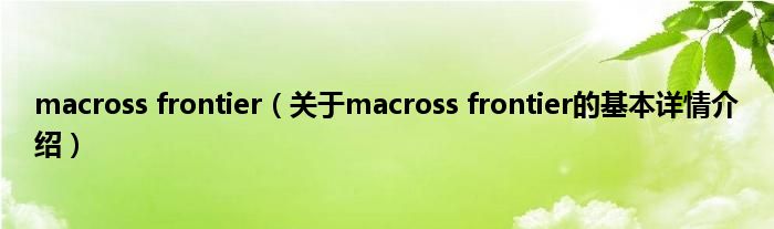 本文关于macross frontier的基本详情介绍就讲解完毕,希望对大家有所帮助。