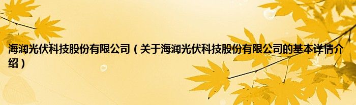 本文关于海润光伏科技股份有限公司的基本详情介绍就讲解完毕,希望对大家有所帮助。