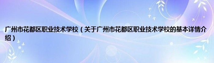 本文关于广州市花都区职业技术学校的基本详情介绍就讲解完毕,希望对大家有所帮助。