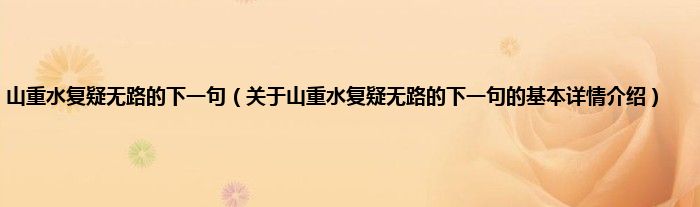 山重水复疑无路的下一句(关于山重水复疑无路的下一句的基本详情介绍)