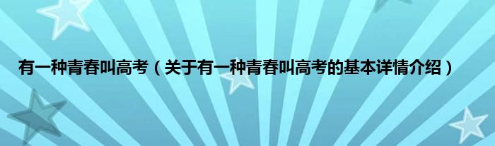 有一种青春叫高考(关于有一种青春叫高考的基本详情介绍)