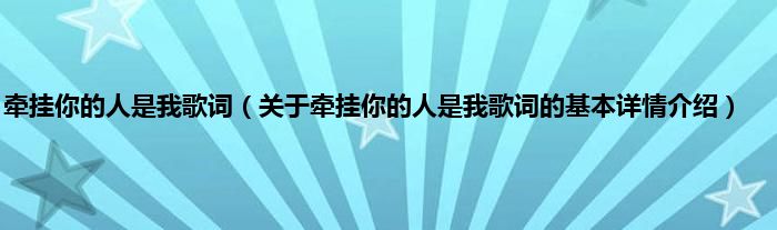 本文关于牵挂你的人是我歌词的基本详情介绍就讲解完毕,希望对大家有所帮助。