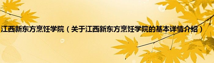 本文关于江西新东方烹饪学院的基本详情介绍就讲解完毕,希望对大家有所帮助。