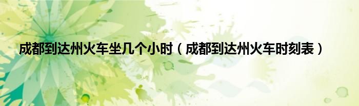以上就是【成都到达州火车坐几个小时,成都到达州火车时刻表】相关内容。