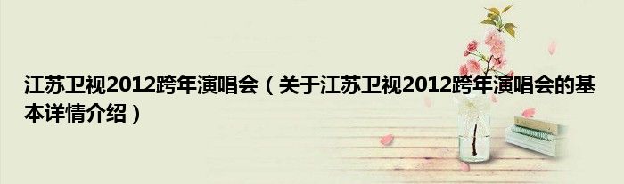 本文关于江苏卫视2012跨年演唱会的基本详情介绍就讲解完毕,希望对大家有所帮助。