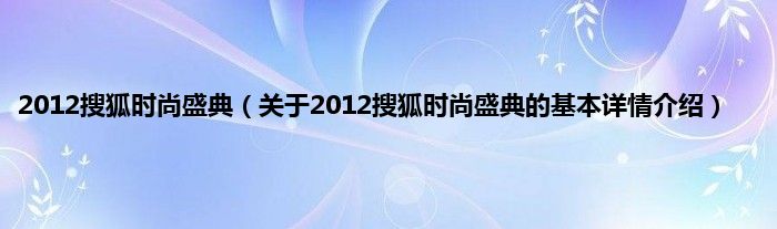 本文关于2012搜狐时尚盛典的基本详情介绍就讲解完毕,希望对大家有所帮助。