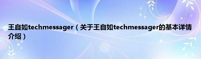 本文关于王自如techmessager的基本详情介绍就讲解完毕,希望对大家有所帮助。