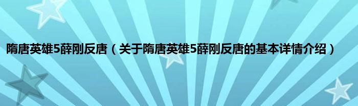 本文关于隋唐英雄5薛刚反唐的基本详情介绍就讲解完毕,希望对大家有所帮助。