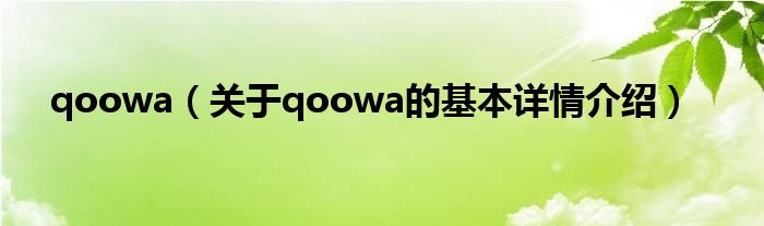 本文关于qoowa的基本详情介绍就讲解完毕,希望对大家有所帮助。